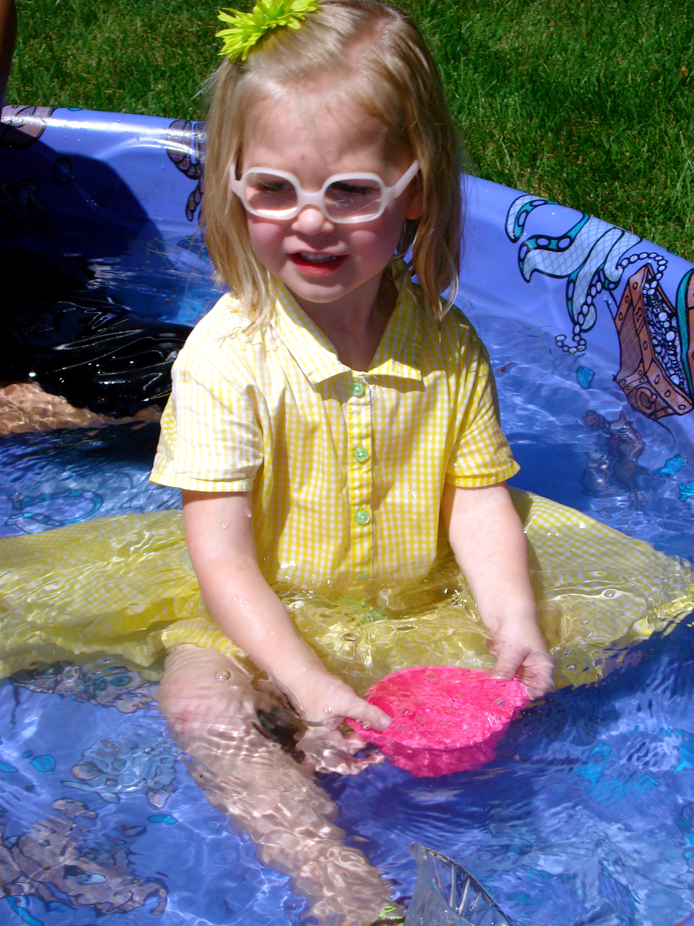 Yep, just plop down in the pool…dress and all! It’s good being a girl 🙂