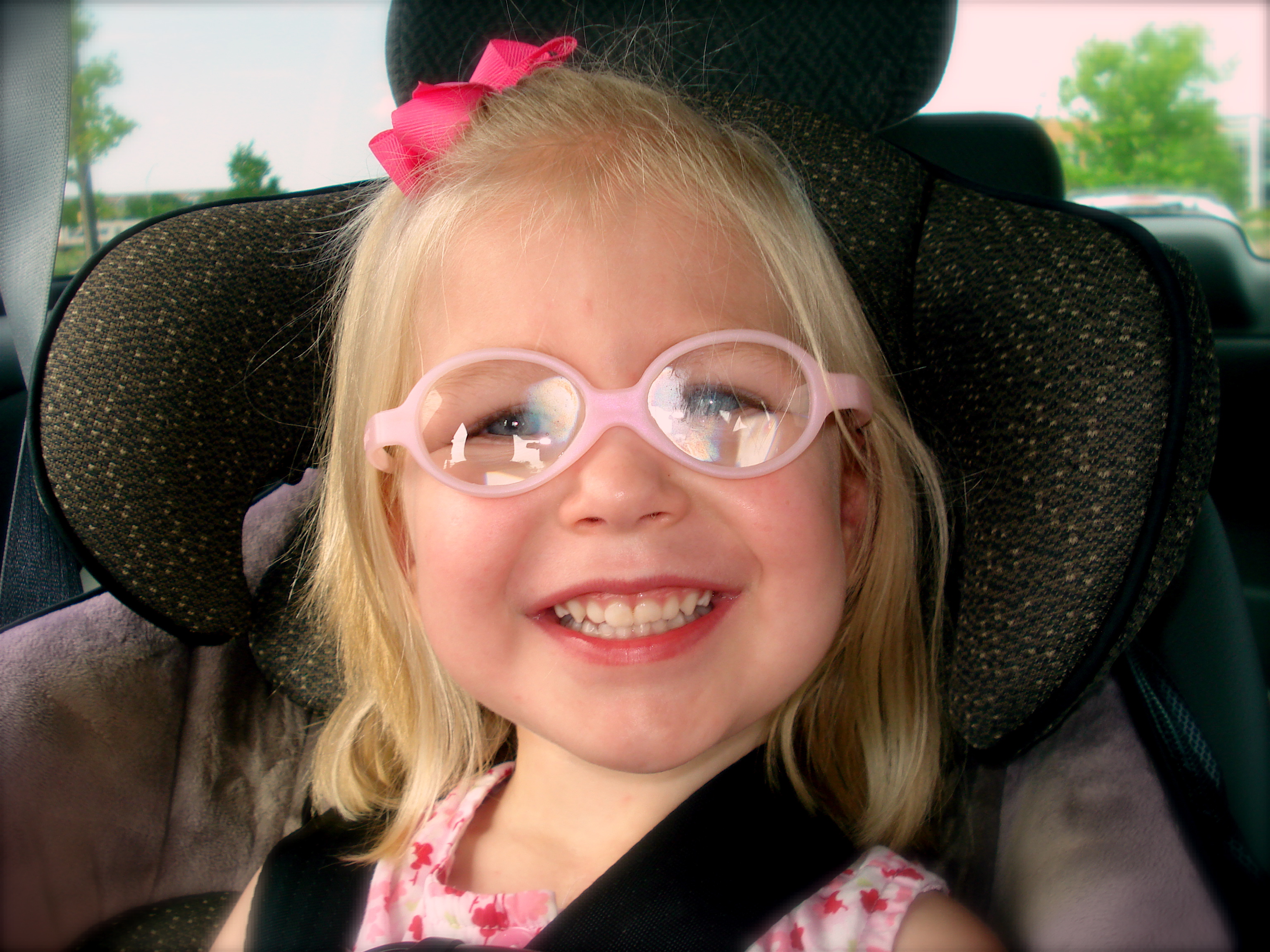 Anyway, after her last appointment (six months ago) I knew it was probably time for new glasses and she was SUPER excited about the prospect of picking them out. Her one preference was that they should be pink…surprise, surprise. Ava’s appointment went well, she made lots of new friends of course. Her prescription changed just a little with her left eye needing a little stronger lens. She does have to go back in three months because there is a possibility of her needing bifocals. Say what? My four year old needs BIFOCALS? Yep, that’s exactly what my reaction was. It’s not for sure yet (that’s why we go back in three months) and my understanding is they are for the opposite reason that most people wear them. They would actually keep her eyes from wanting to cross. So…we’ll cross that bridge if or when we come to it.