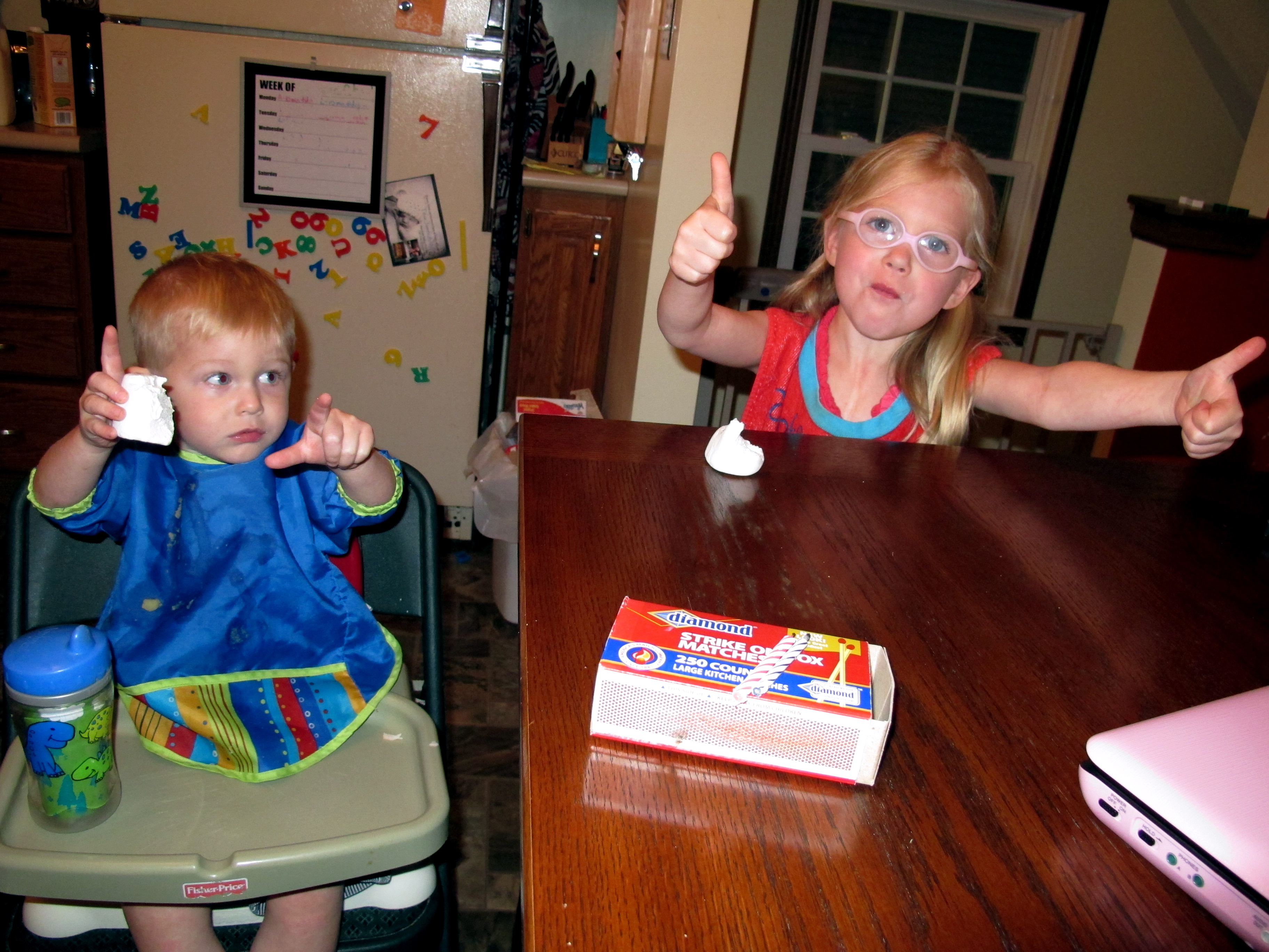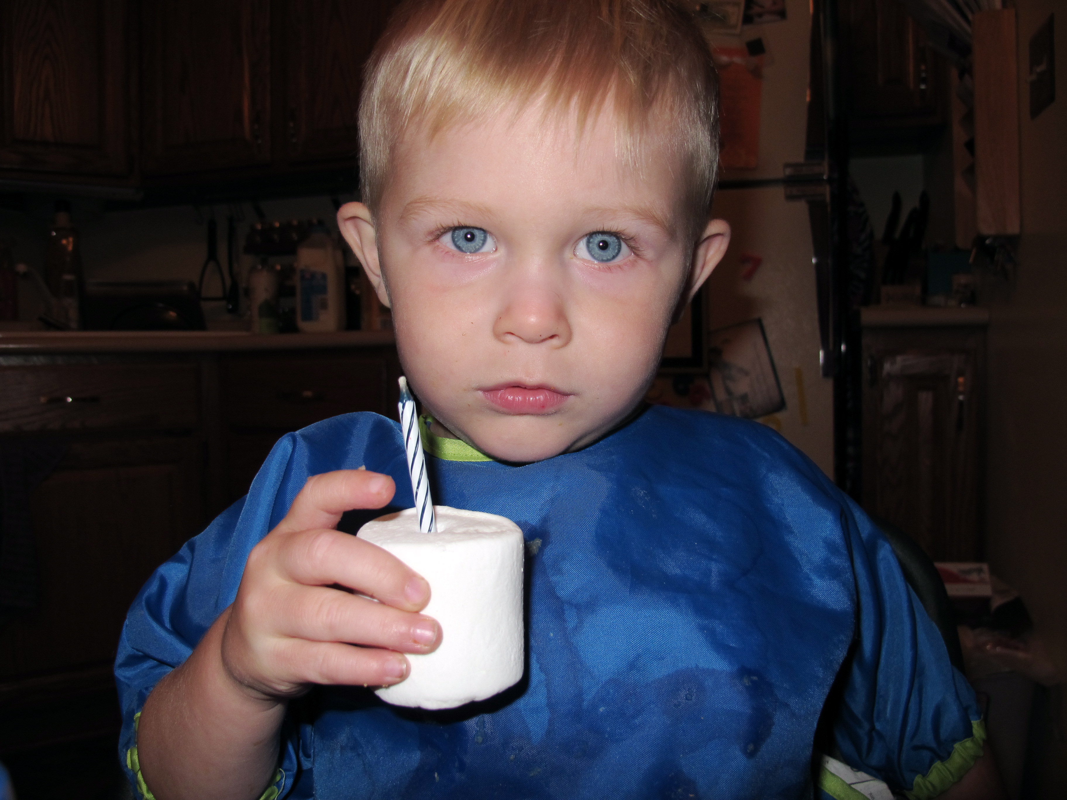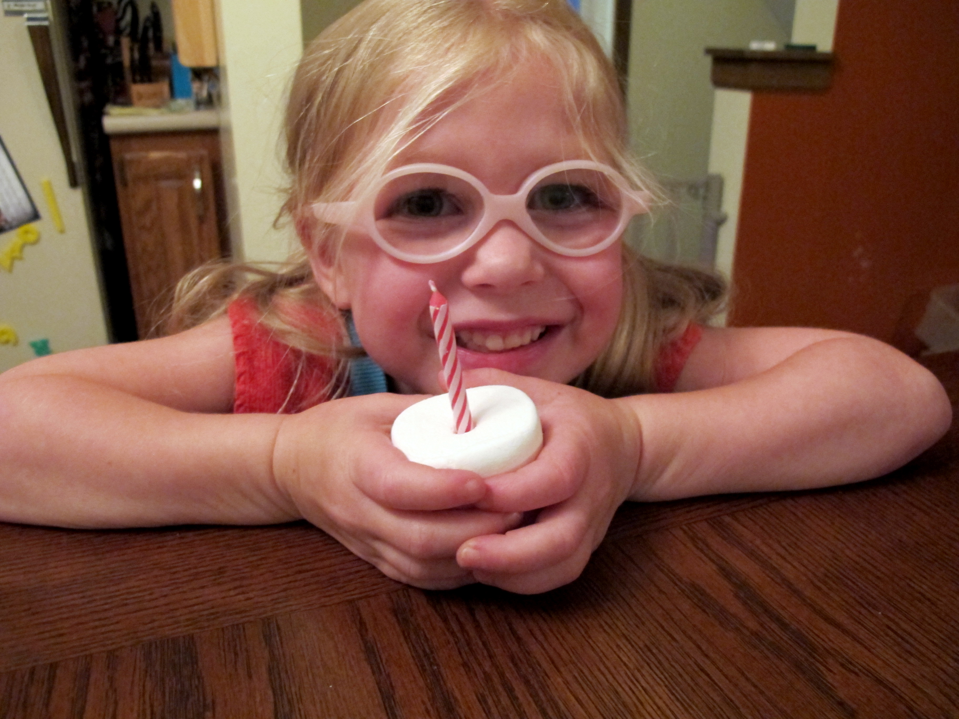 and then headed to the store to buy a cake because I hadn’t planned that ahead of time. At the store I couldn’t find anything that Linc could eat (darn food allergies), but in a stroke of genius…ahem…I bought a bag of giant marshmallows, stuck a couple of candles in them, and the kids were pleased as punch.